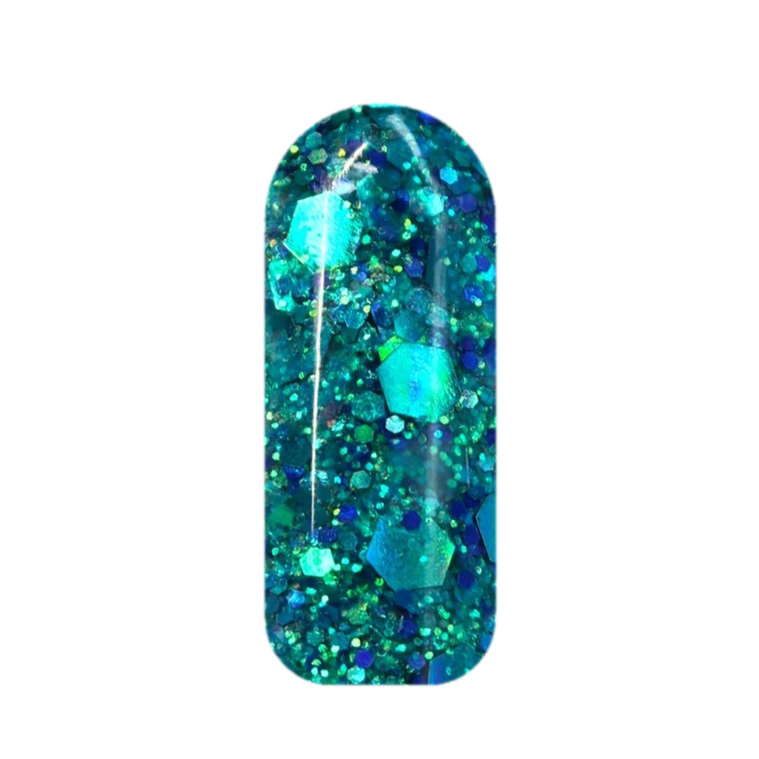 A bold teal and green chunky glitter blend that shimmers like an intergalactic aura. This dazzling shade captures light from every angle and adds a cosmic pop to your manicure—perfect for standing out and staying fabulous.