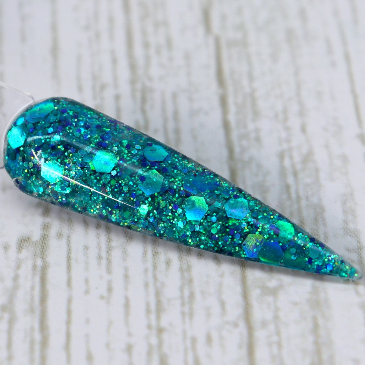 Bold Glitter Blend: Teal and green tones combine for a multidimensional shimmer.