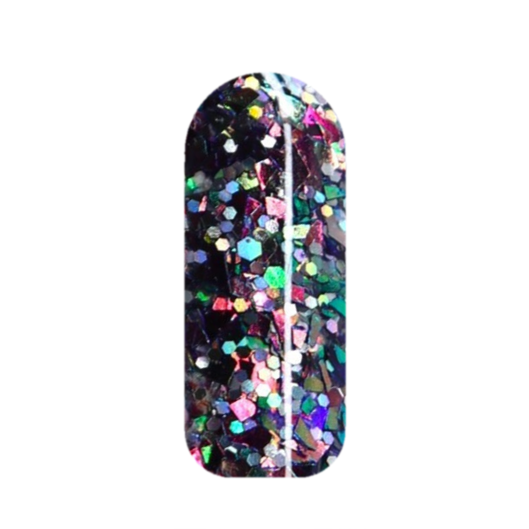 Turn love on its head with Bitter End – a color-shifting dip powder that captures the essence of rebellion. With shifts of green, purple, pink, and black, this chunky glitter blend features glitter shards that create a bold, dramatic effect. Perfect for those who want to break free from tradition and embrace the anti-Valentine’s spirit.