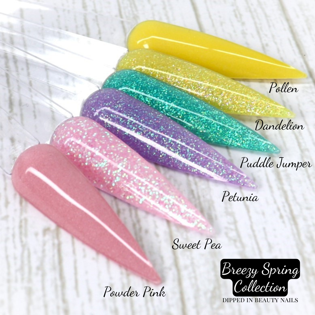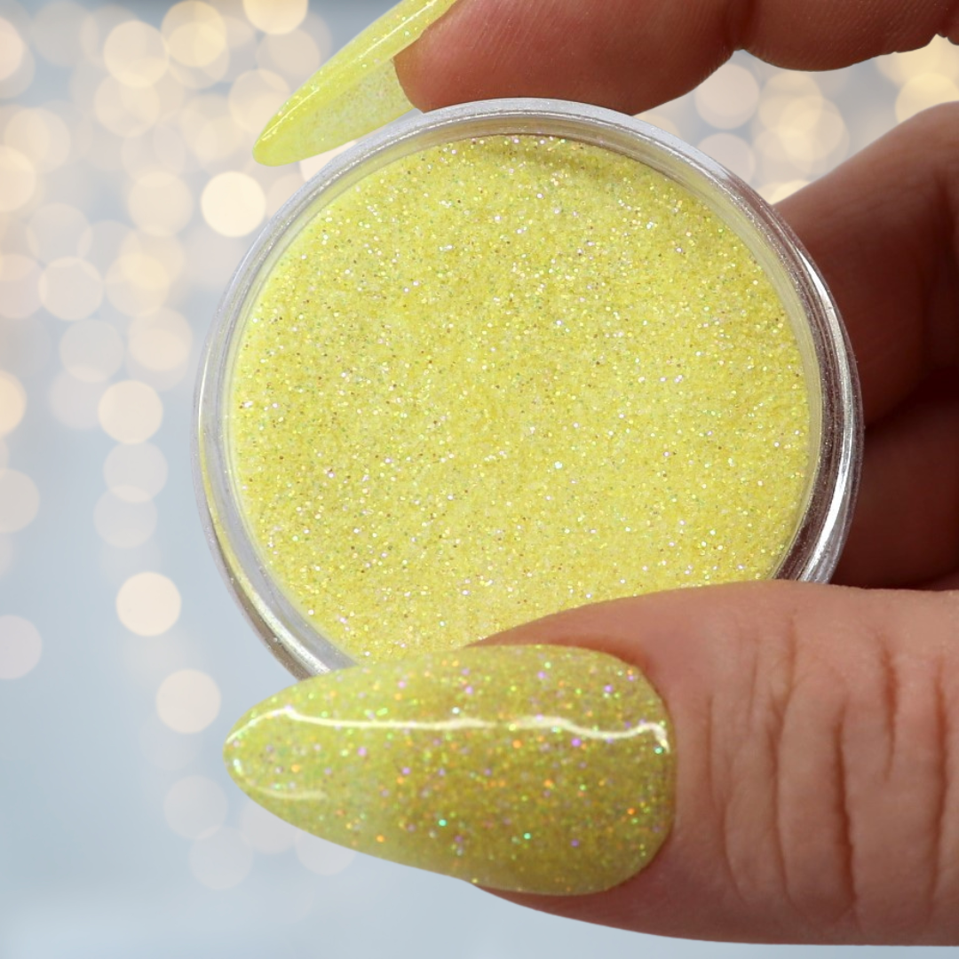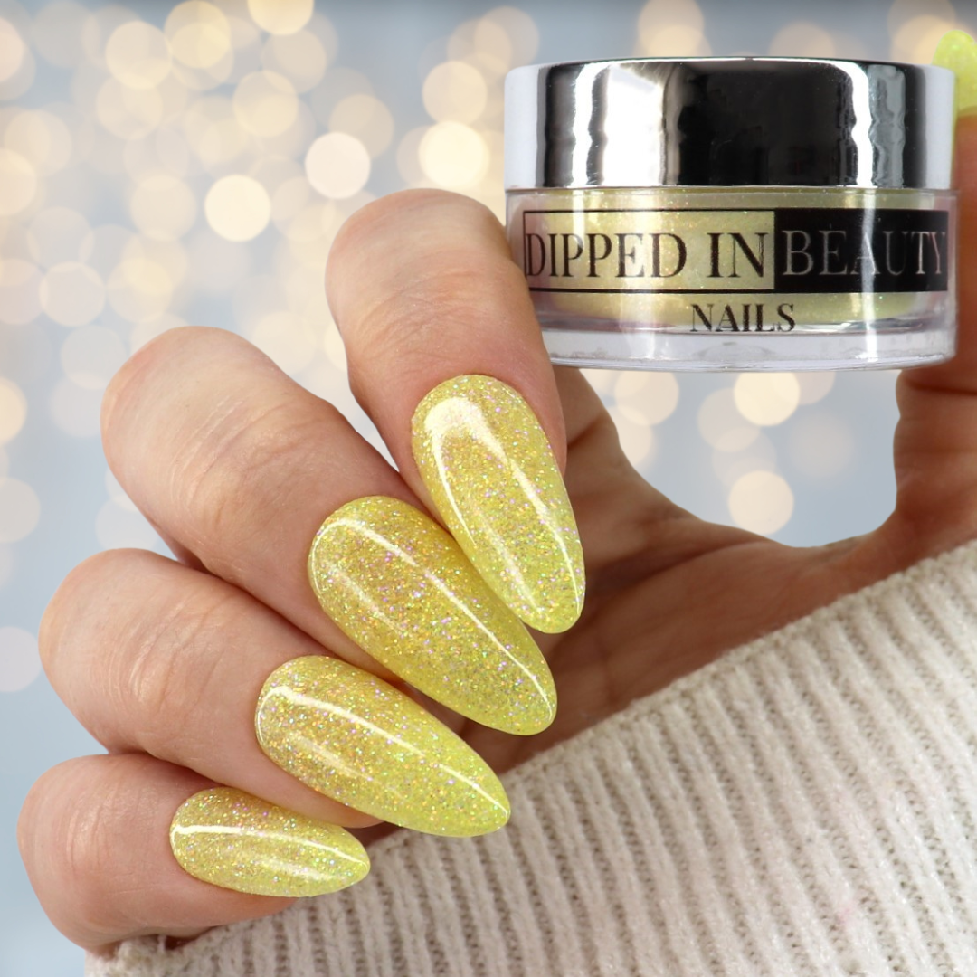 Bright and cheerful, Dandelion is a warm yellow dip powder packed with shimmering glitter for a radiant, sun-kissed effect. This golden hue captures the essence of spring and sunshine in every manicure.