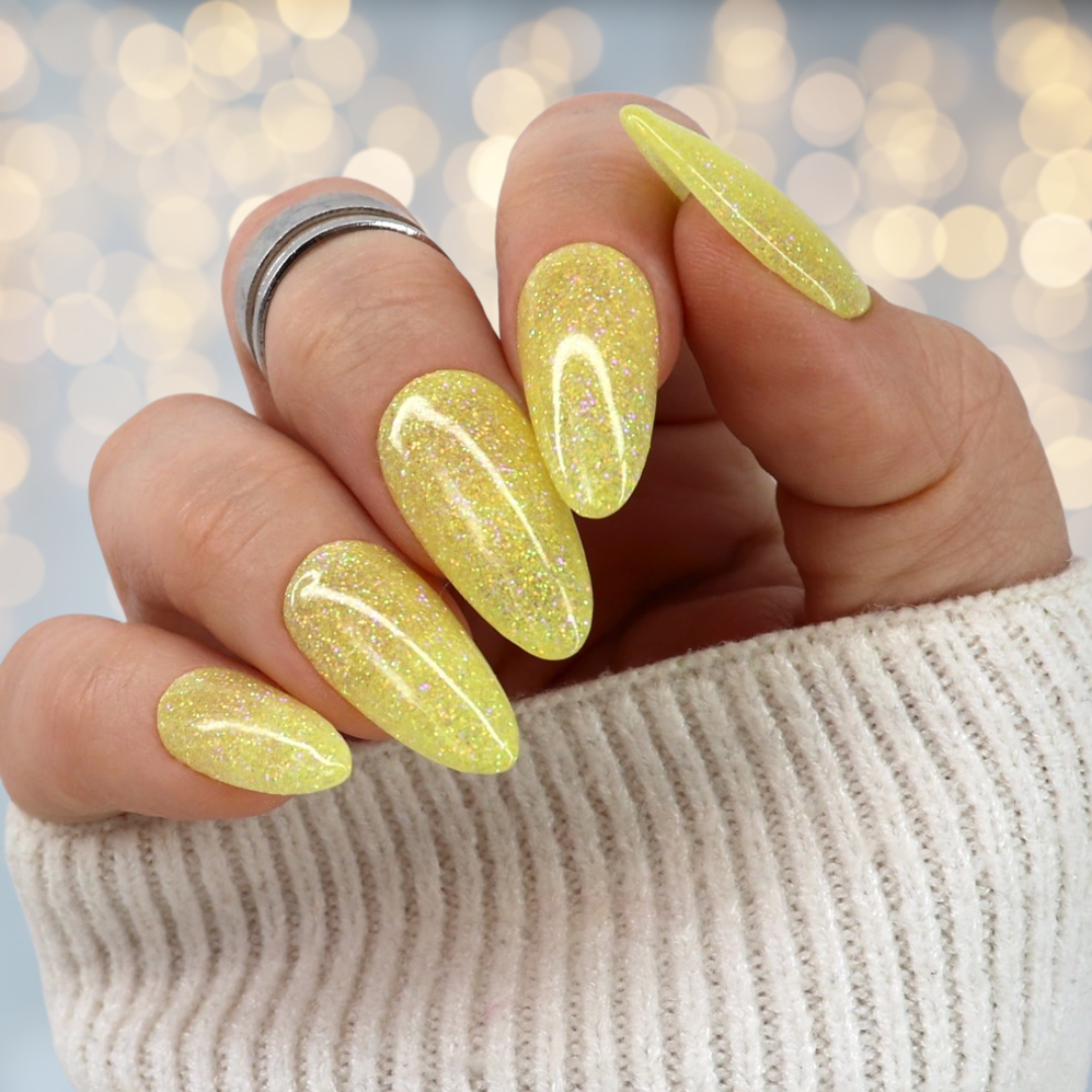 Long-Lasting: Keeps its vibrant yellow glow and shimmer for days.