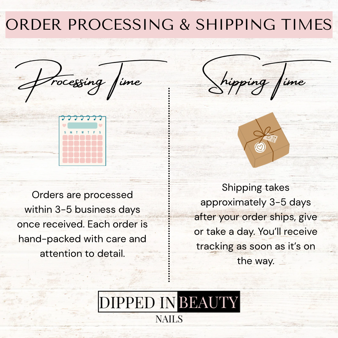 To comply with USPS regulations for nail liquids, your starter kit must ship via USPS Ground Advantage. This is required by law for flammable or hazardous nail liquids. Please allow a few extra days for delivery — I promise it’s worth the wait!