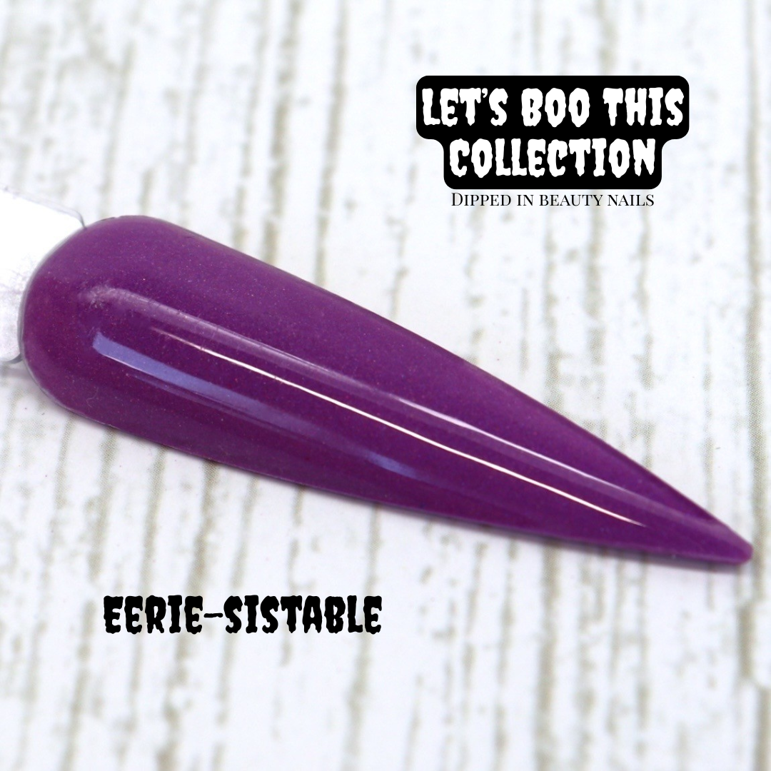Get bewitched with Eerie-sistable – a deep, moody purple dip powder that oozes mystery and elegance. The perfect shade for a classy yet spooky manicure.