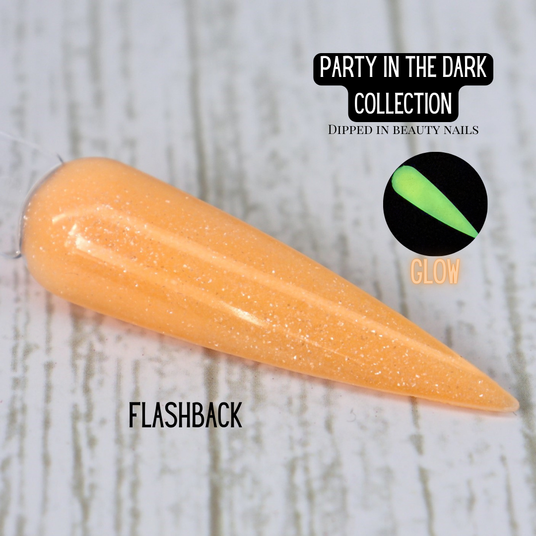 Flashback – A stunning pastel neon orange dip powder with a subtle shimmer that glows in the dark, bringing a bold yet soft pop of color to your manicure. Whether you're embracing a vibrant summer look or adding a glowing touch to your nails, Flashback is the perfect way to stand out—day or night!