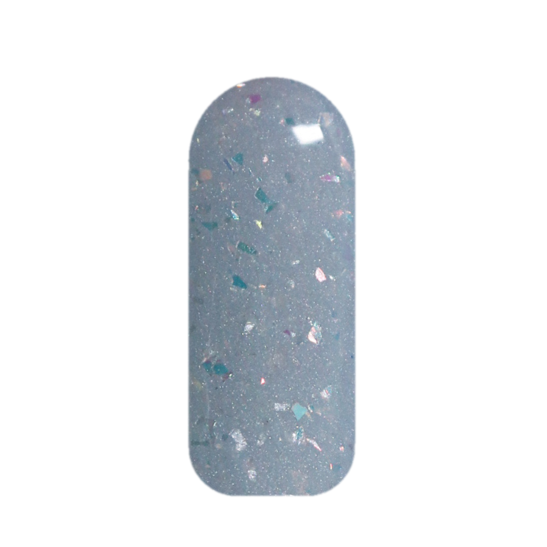A pale icy blue dip powder with subtle iridescent flakes that add a soft, wintery glow.