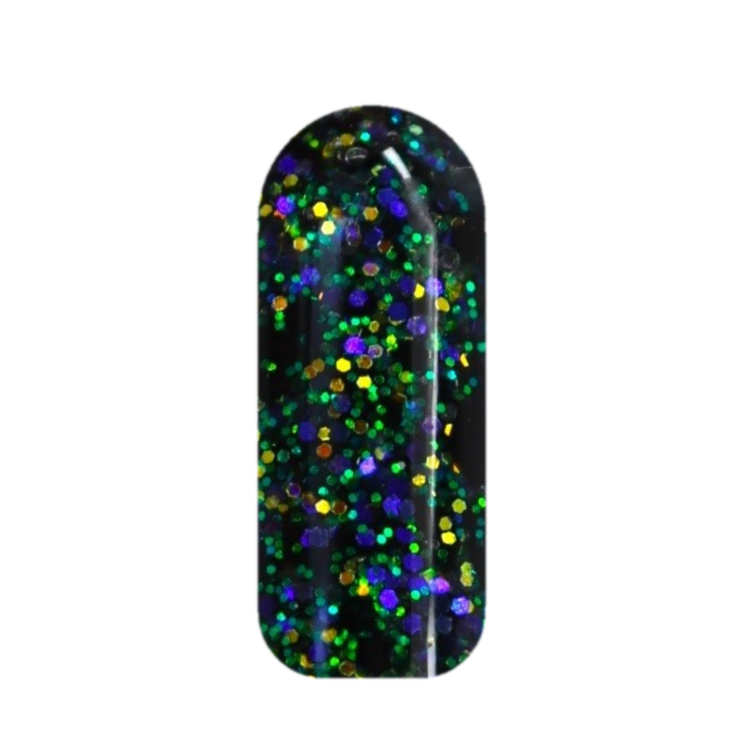 Holographic Black Base: Deep, dark, and electric with rainbow shimmer.