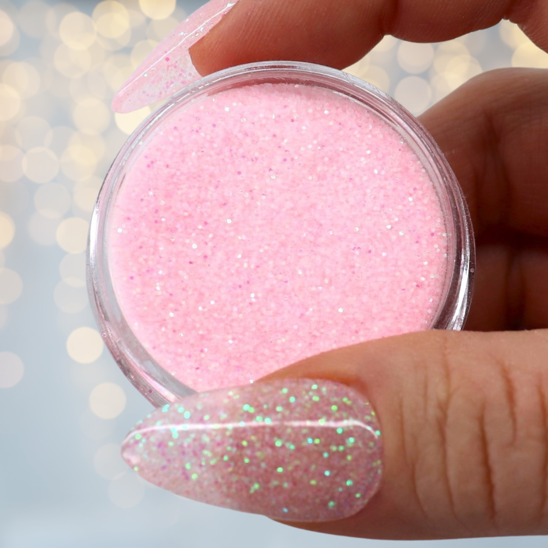 Bright and cheerful, Sweet Pea is a playful pink dip powder infused with iridescent glitter for a sparkling, eye-catching finish. Perfect for adding a touch of fun and femininity to your manicure.