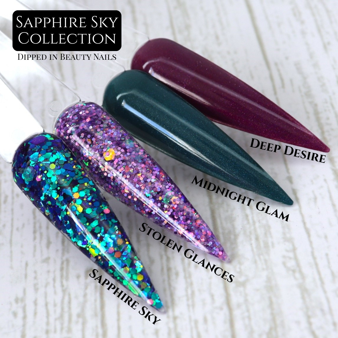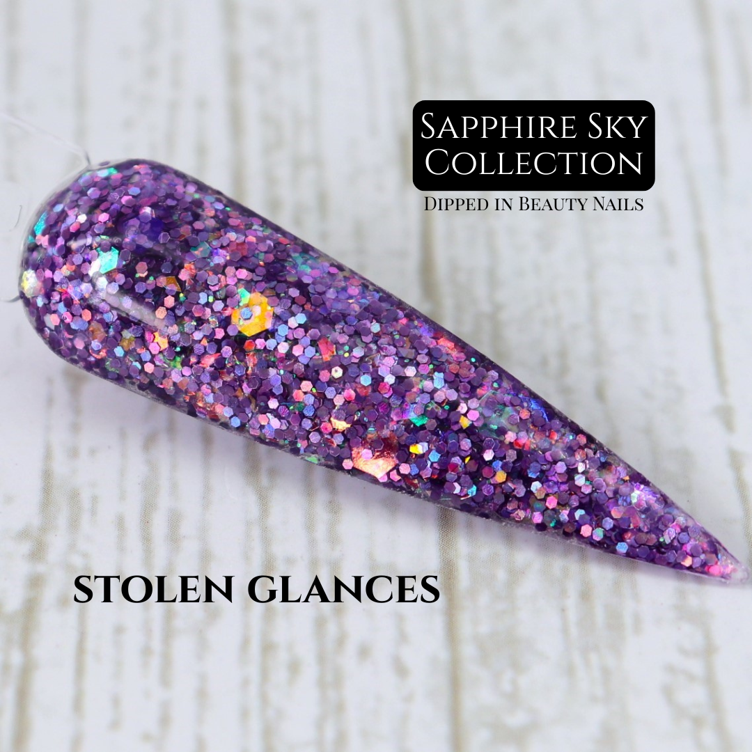 Turn heads with Stolen Glances, a captivating purple glitter blend that captures the thrill of a magnetic moment. With layers of sparkling dimension, this flirty dip powder brings a playful, romantic vibe to your manicure—perfect for late-night dates and stolen moments.