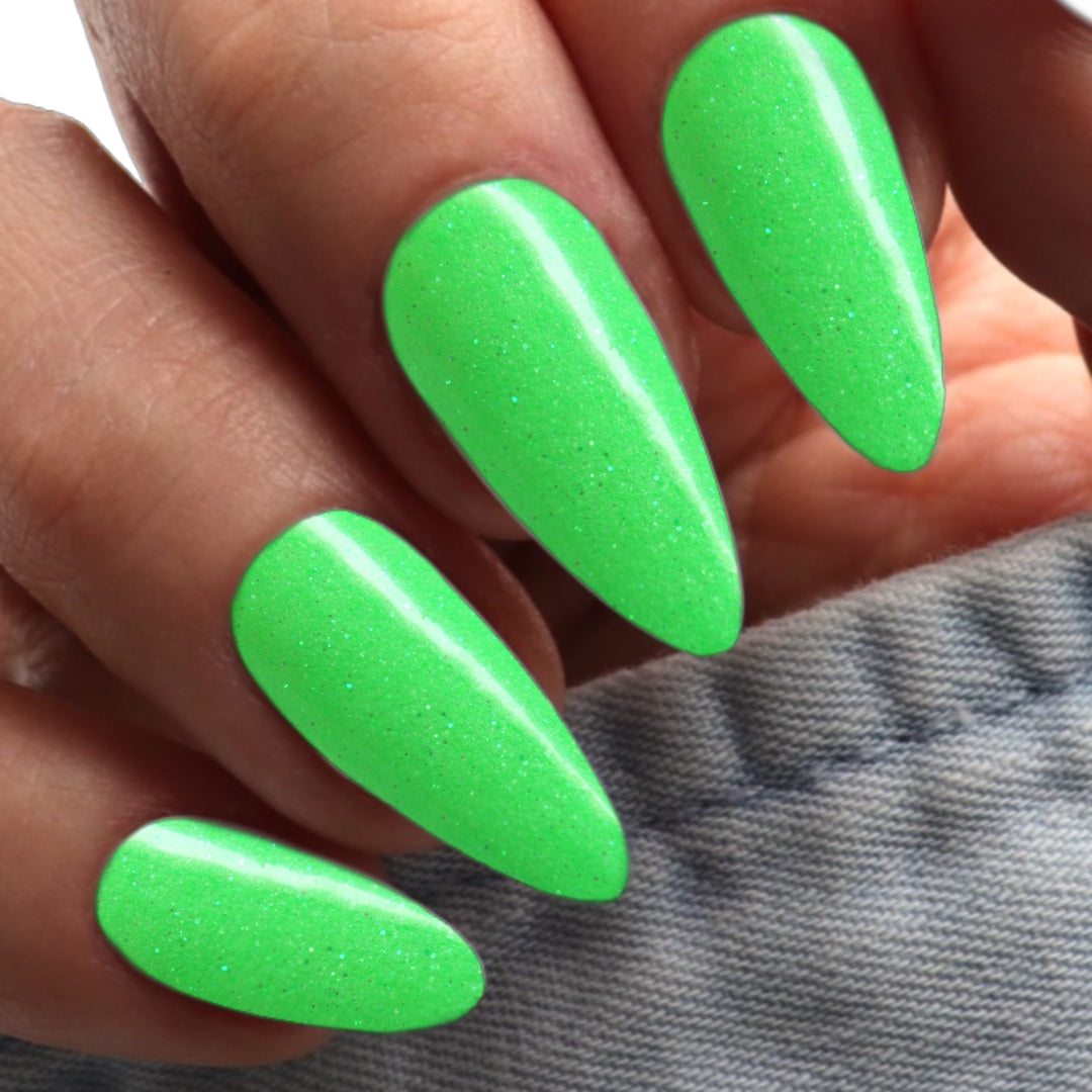 Brighten up your nails with Lime Lush, a vibrant neon green dip powder infused with fine glitter for a stunning, eye-catching finish. Perfect for making a bold statement, this sparkly shade captures the energy of summer and is sure to turn heads.
