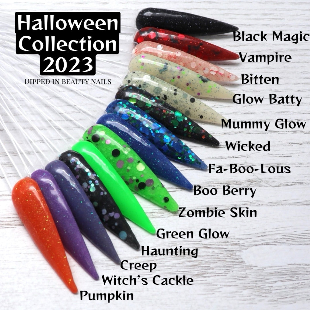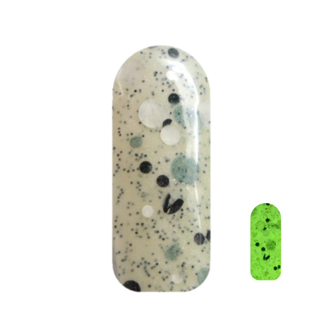Unveil the mystique with Mummy Glow – a creamy white dip powder infused with black and white glitter that reveals a captivating glow in the dark. This eerie yet elegant shade is perfect for creating a spooky-chic manicure that stands out day and night.