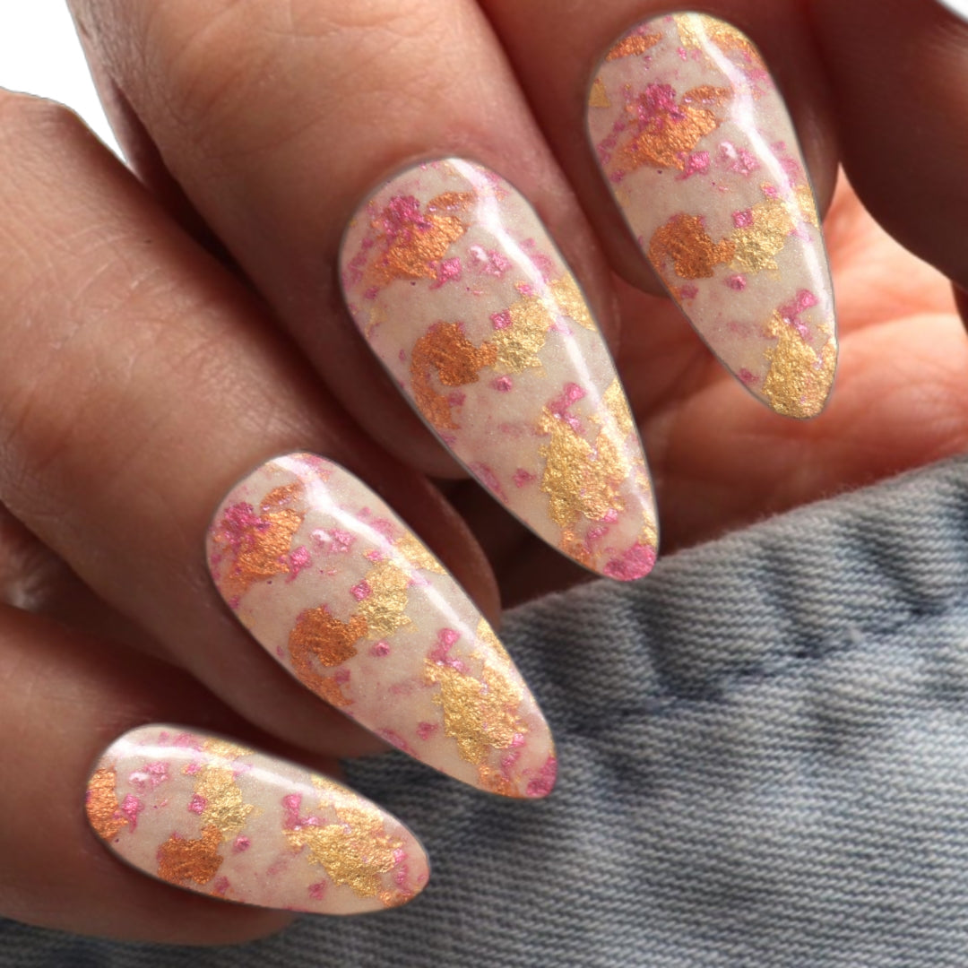 Celebrate the season with Springtime Bloom, a charming light pink dip powder adorned with vibrant pink, orange, and gold glitter flakes. This delightful blend captures the essence of blooming flowers and sunny days, adding a touch of playful sparkle and elegance to your nails.
