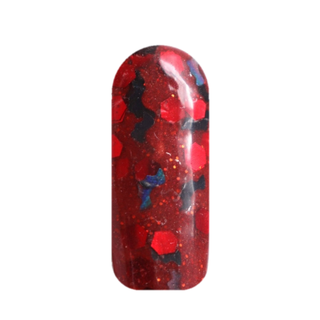 Sink Your fangs into Vampire – a deep crimson red Halloween dip powder that’s ready to bring a bold, dramatic flair to your nails. Infused with chunky bat glitter, this shade is perfect for a spooky and striking Halloween look.