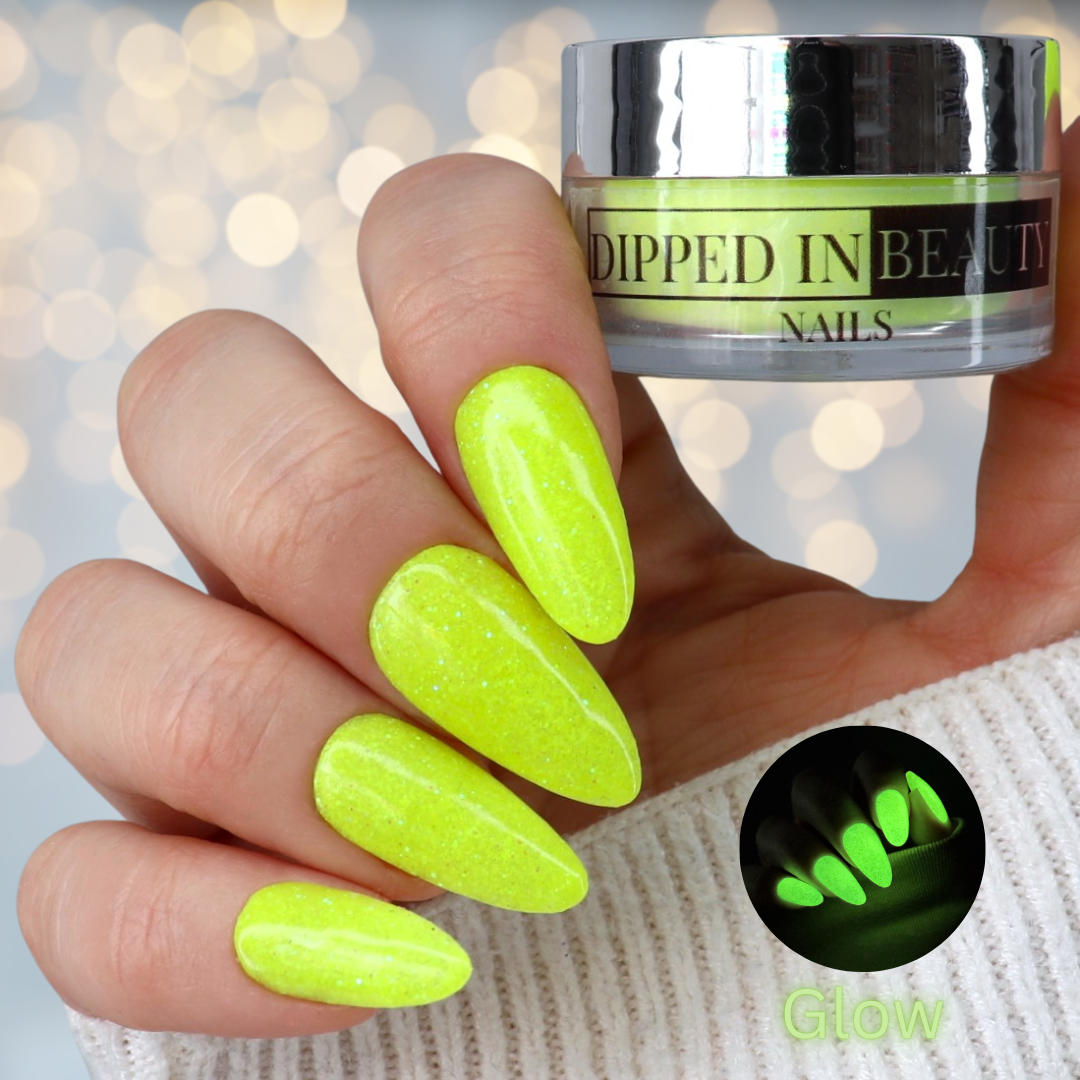 Electrify your look with Voltage – a neon yellow glow-in-the-dark glitter dip powder that’s charged with vibrant energy and a dazzling sparkle. Perfect for making a bold statement and lighting up the night with your nails.