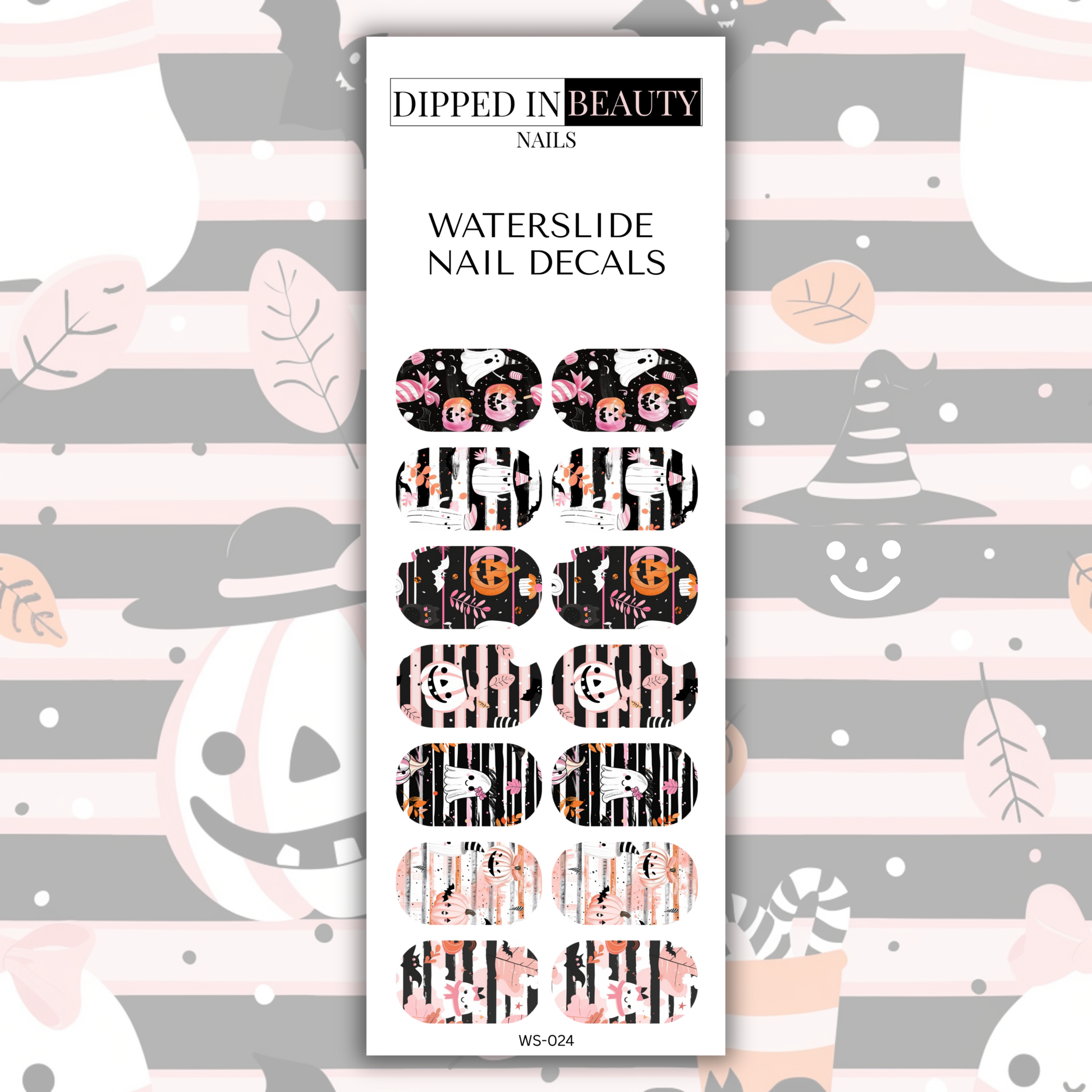 🩷 Bring a playful twist to spooky season with these Pink Halloween Waterslide Nail Decals! Featuring cute ghosts, pumpkins, pink-and-black stripes, and whimsical Halloween details, these full nail wraps are perfect for creating fun, trendy Halloween manis. Easy to apply with dip powder, gel, or polish — ideal for spooky cute nail lovers.