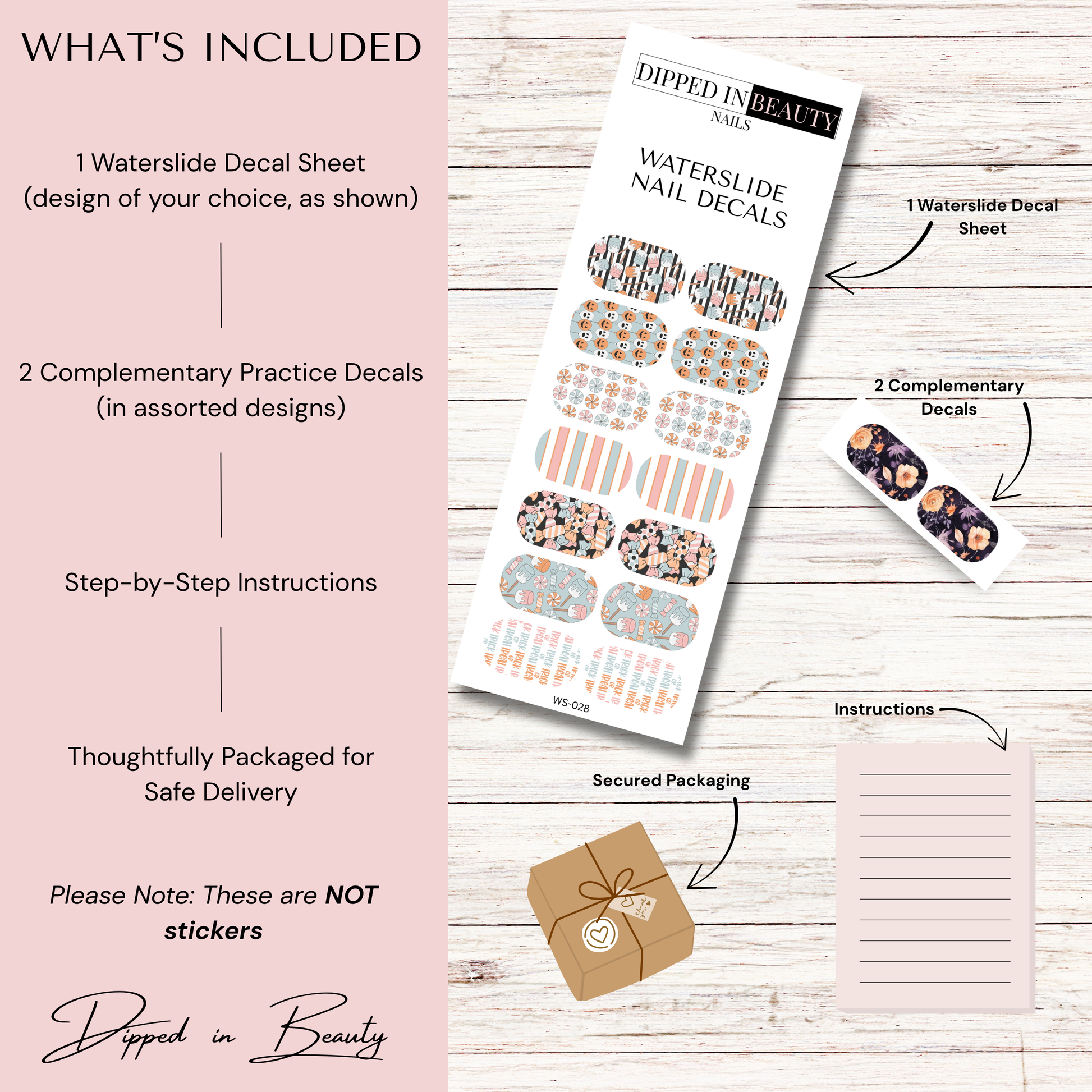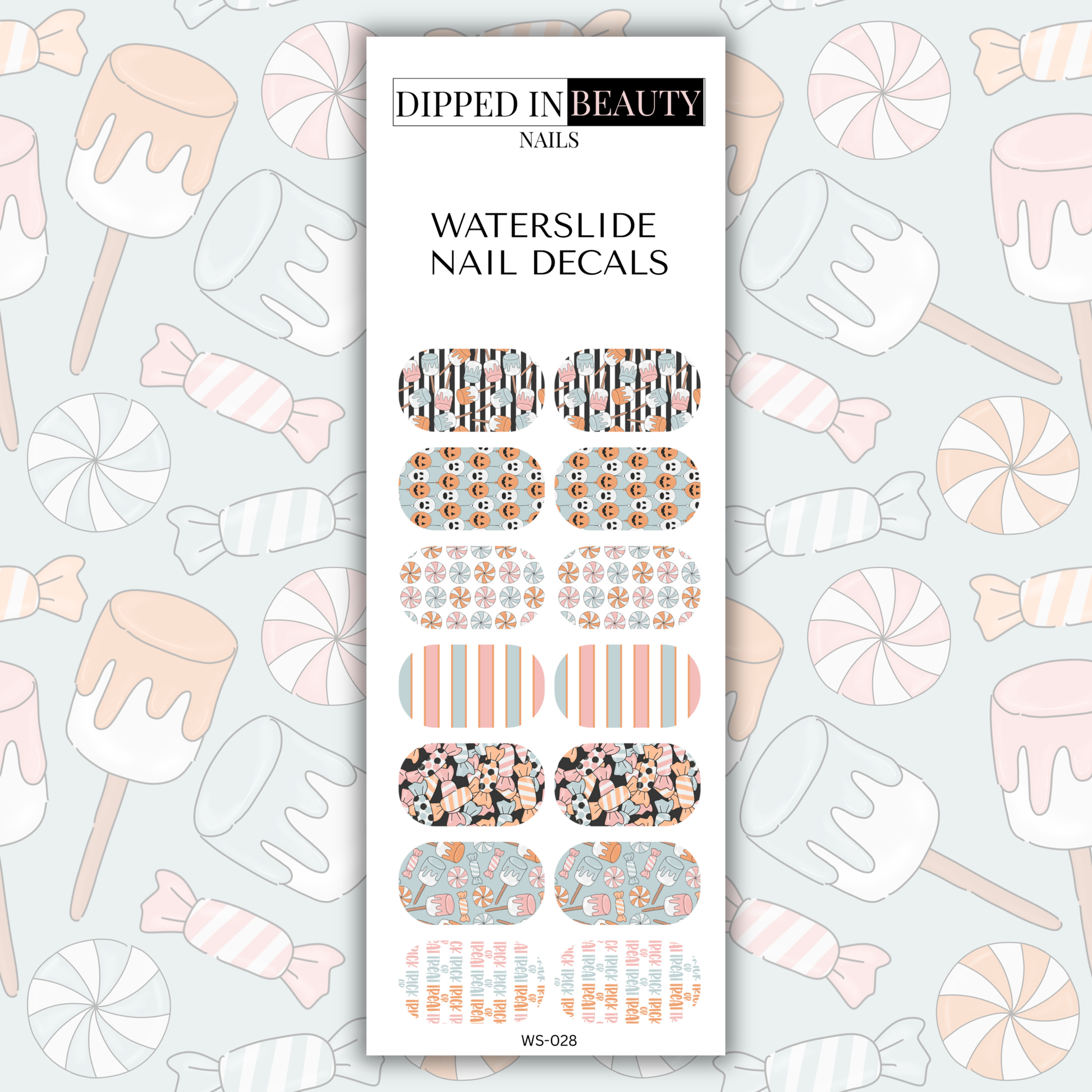 🍠Indulge in sweet spooky vibes with these Pastel Candy & Pumpkin Halloween Waterslide Nail Decals! Featuring soft stripes, playful pumpkins, candy motifs, and pastel checkerboard patterns, these full nail wraps are perfect for creating whimsical Halloween manis. Easy to apply with dip powder, gel, or polish — ideal for spooky cute nail lovers.