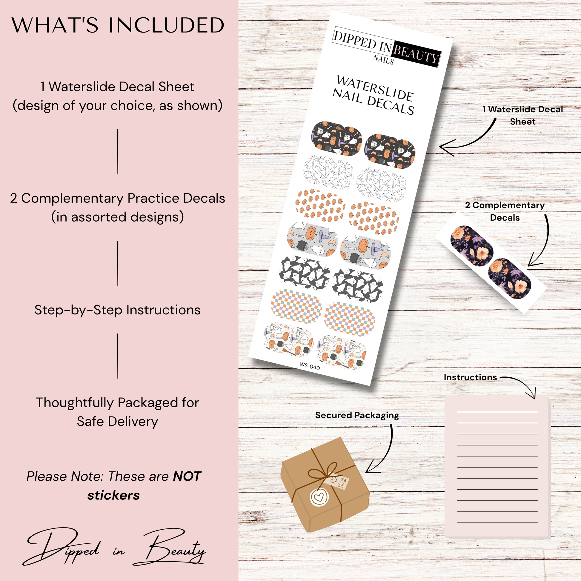 🍂 Bring fall in full bloom to your nails with these Autumn Floral Waterslide Nail Decals! Featuring bold orange, deep red, and golden florals with a watercolor effect, these wraps capture the cozy warmth of the season. Easy to apply with dip powder, gel, or polish — perfect for DIY nail lovers who want a statement fall manicure.